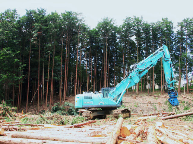 土屋林業は「安心で安全な工事」をモットーに高い技術力で、常に環境や人々の暮らしに十分配慮をし、広大な土地の伐採や狭い土地での伐採など、大型重機からチェーンソーを使用し伐採作業、搬出作業を行ってまいります。